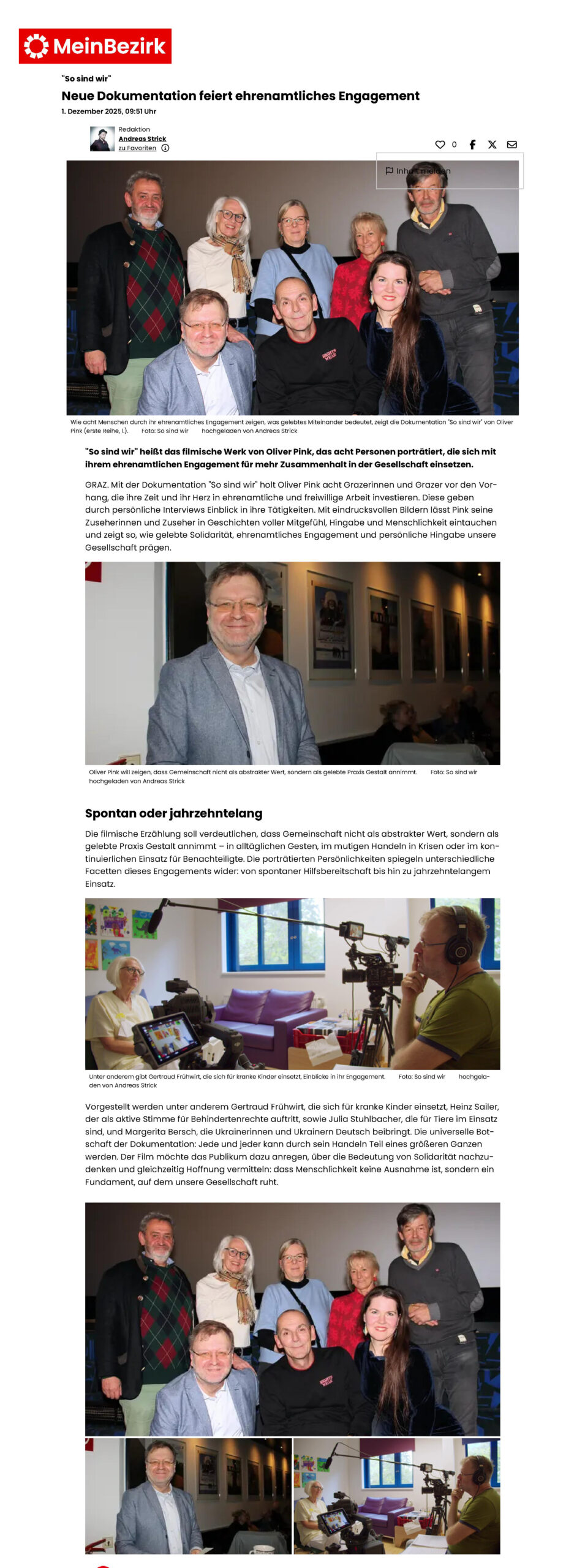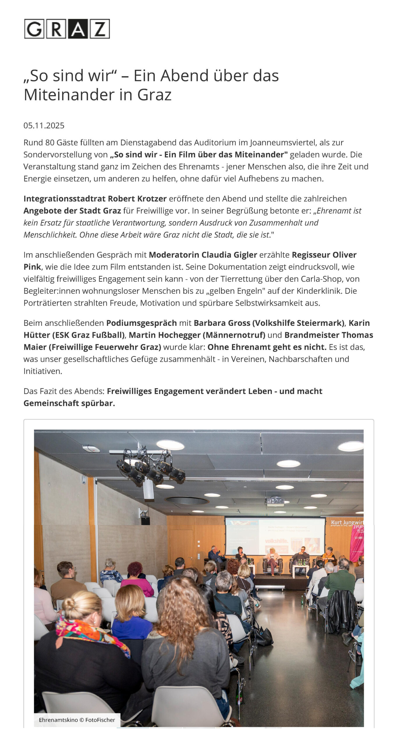 Vorankündigung zur „SO SIND WIR“ -Kinopremiere im KIZ ROYAL Graz.